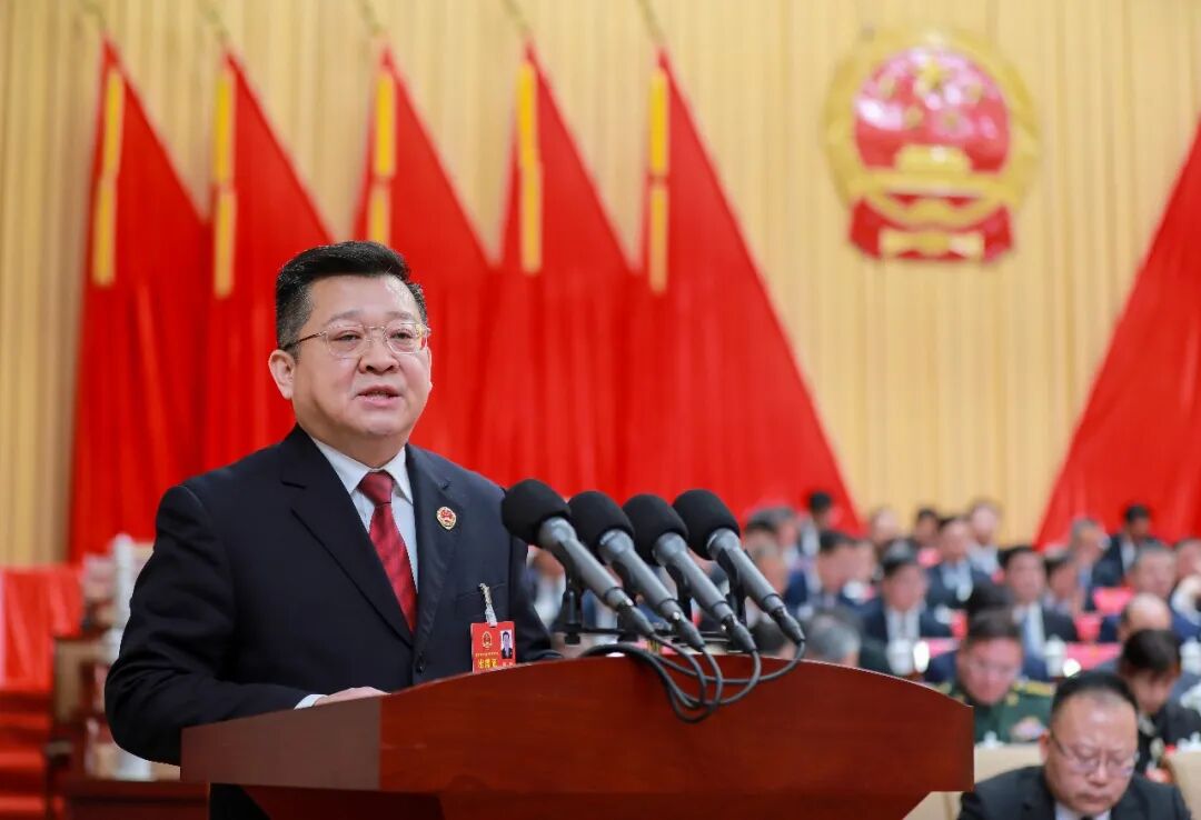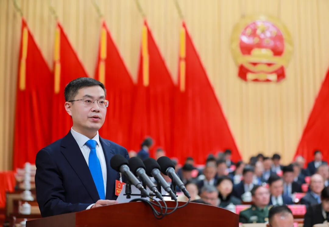 上午9时,朱晏辰宣布大会开幕。全体起立,会场响起雄壮的国歌声。在417名到会代表的热烈掌声中,刘晓璐代表市政府向大会作政府工作报告。报告共分为四部分:“十四五”时期工作回顾;“十五五”时期经济社会发展总体思路和目标任务;2026年工作安排;加强政府自身建设。