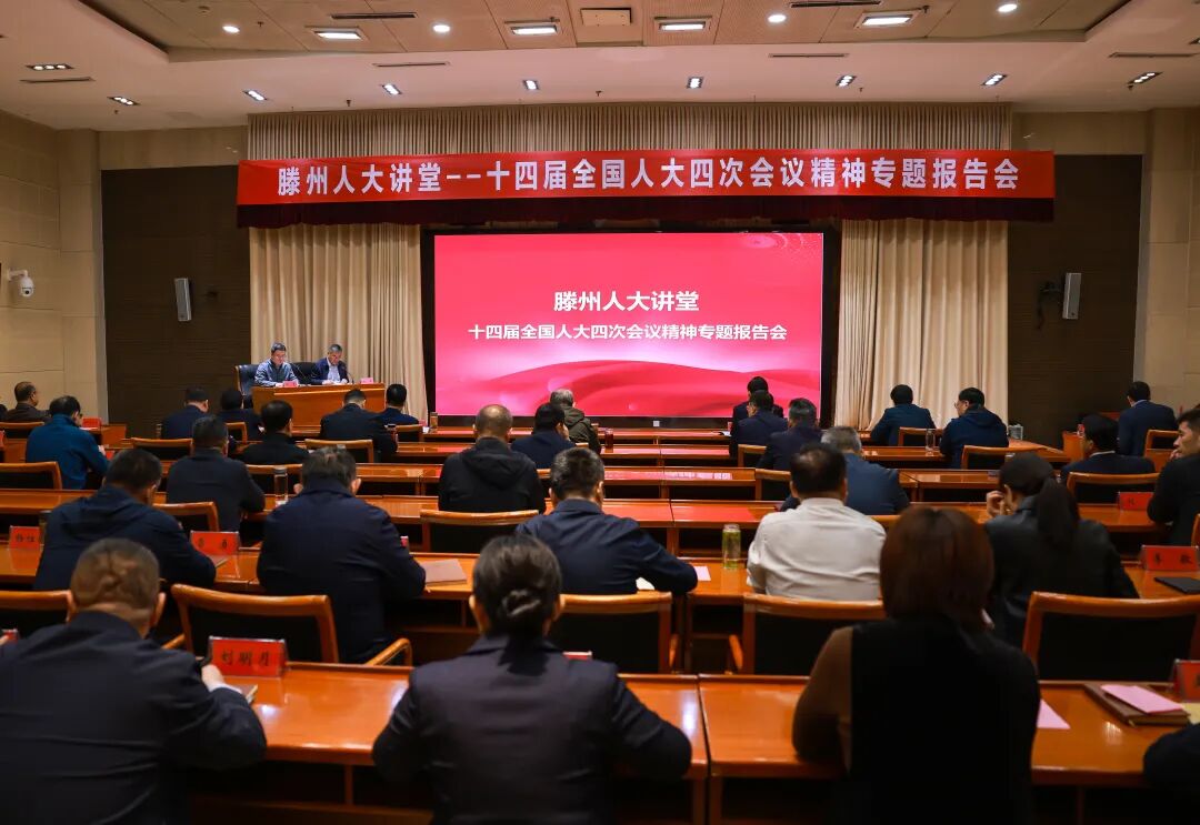 4月13日,滕州人大讲堂——十四届全国人大四次会议精神专题报告会举行,邀请全国人大代表、山东威达精工智能装备有限公司电气技术部部长王亮作专题报告,市人大常委会党组副书记、副主任马冀主持报告会,市人大常委会副主任杜孝玺、孙剑、孔凡华、王开峰,市人大常委会党组成员、办公室主任贾福军出席。