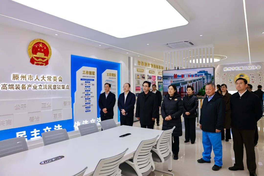 随后,调研组来到高端装备产业立法民意征集点,实地察看了依托行业协会、龙头企业设立的特色立法联络机制,了解活动开展情况及工作成效。调研组指出,高端装备产业立法民意征集点的设立,是滕州市人大常委会立法联系工作向产业链延伸的创新举措,为全省产业立法民意征集点建设提供了参考样本。调研组强调,征集点不仅征集立法民意,更是助力产业发展的“加油站”。要充分发挥这一平台优势,精准对接产业发展的堵点、痛点和企业在生产经营、科技创新、知识产权保护等方面的法治需求,打通企业、代表与立法机关沟通联系的“最后一公里”,将行之有效的惠企政策和监管经验上升为法规制度,打造特色立法品牌,形成可复制、可推广的“滕州经验”,为全省的产业立法贡献智慧。